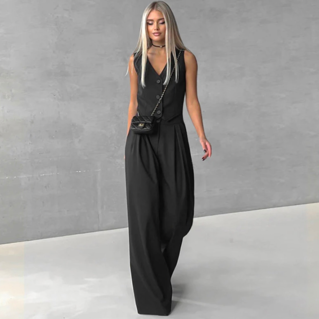 Zweiteiliges Hosen Set – Weste und Plissierte Hosen für Frauen