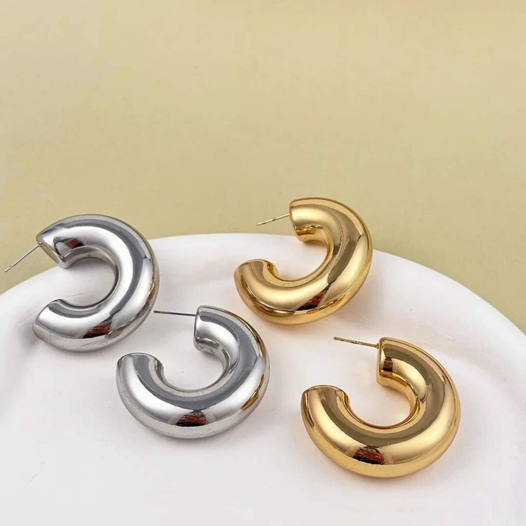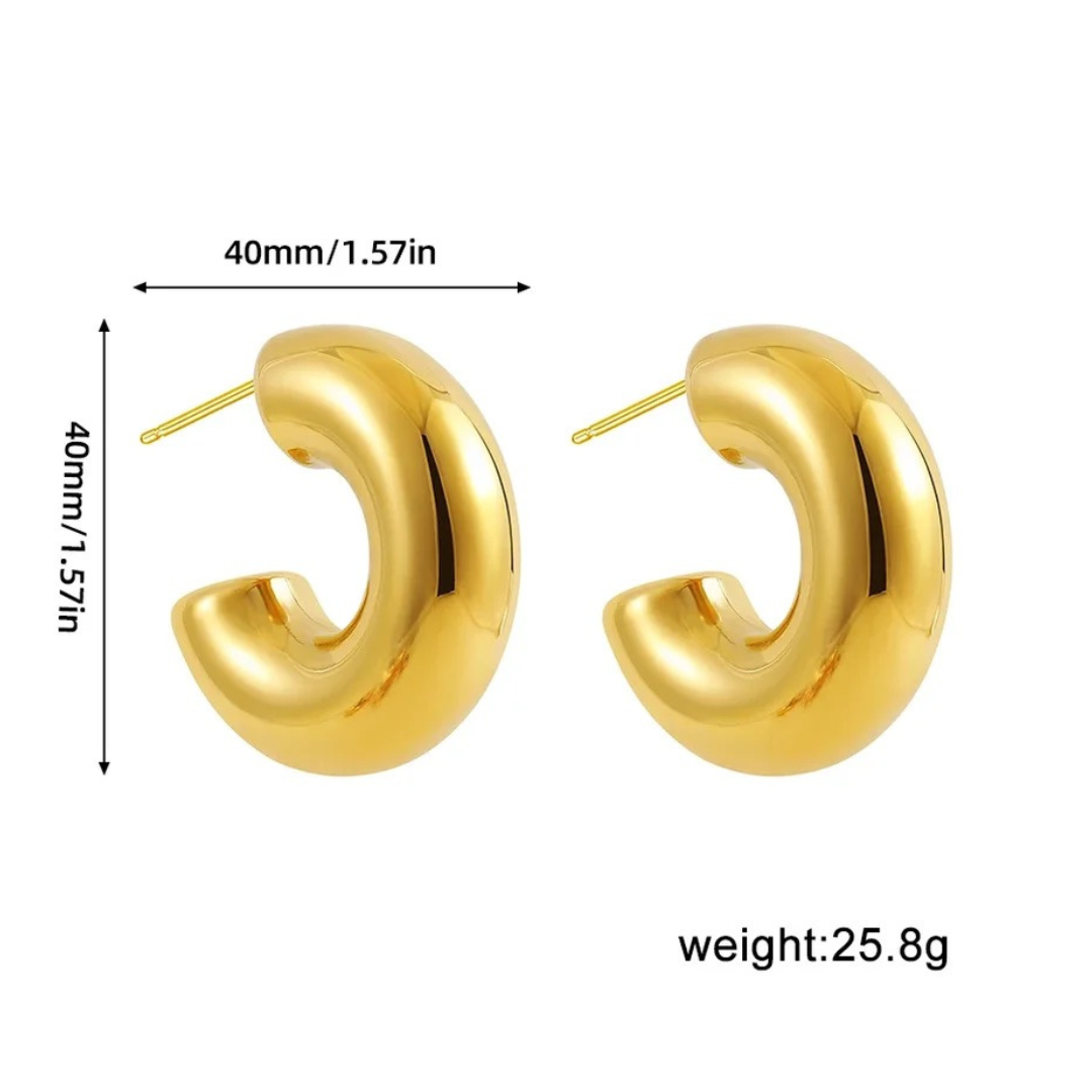 Entdecken Sie die glänzenden C-Form Creolen aus hochwertigem Edelstahl, veredelt mit einer luxuriösen PVD-Vergoldung. Diese klobigen Huggie Creolen sind perfekt für den modernen Ohrschmuck-Look und bieten eine elegante und dennoch auffällige Ergänzung zu jedem Outfit.