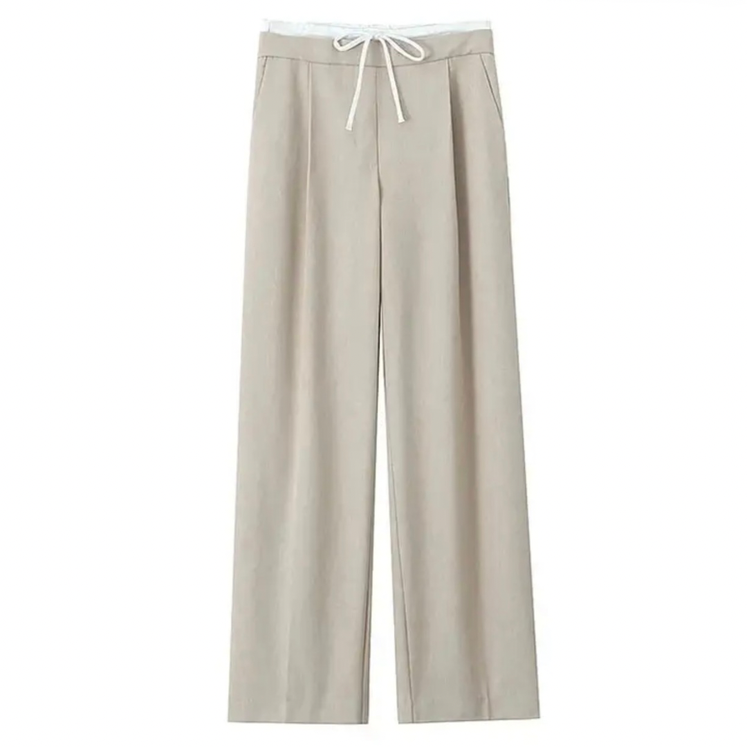 Entdecke unsere stilvolle Hose mit elastischem Bund und abgesetztem Gewebe, die dir ultimativen Tragekomfort bietet. Der elastische Bund mit praktischem Tunnelzug sorgt für eine perfekte Passform, während die eleganten Bundfalten vorne einen modischen Akzent setzen. Die seitlichen Vordertaschen bieten nicht nur Platz für kleine Essentials, sondern unterstreichen auch den lässigen Look. Mit einem weiten Bein geschnitten, garantiert diese Hose Bewegungsfreiheit und einen trendigen Auftritt. Ideal für entspannte Tage oder schicke Alltagsoutfits – kombiniere sie ganz nach deinem Stil!
