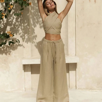 • Design: Solides, ärmelloses Neckholder-Crop-Top mit Knoten-Detail und hohe Taille Hose